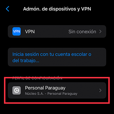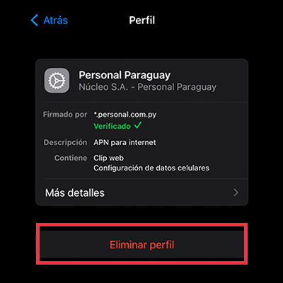 Para actualizar tu perfil, te mostramos como eliminar el actual antes de instalar el nuevo perfil de Personal. A continuación seguí los mismos pasos anteriores para la instalación
